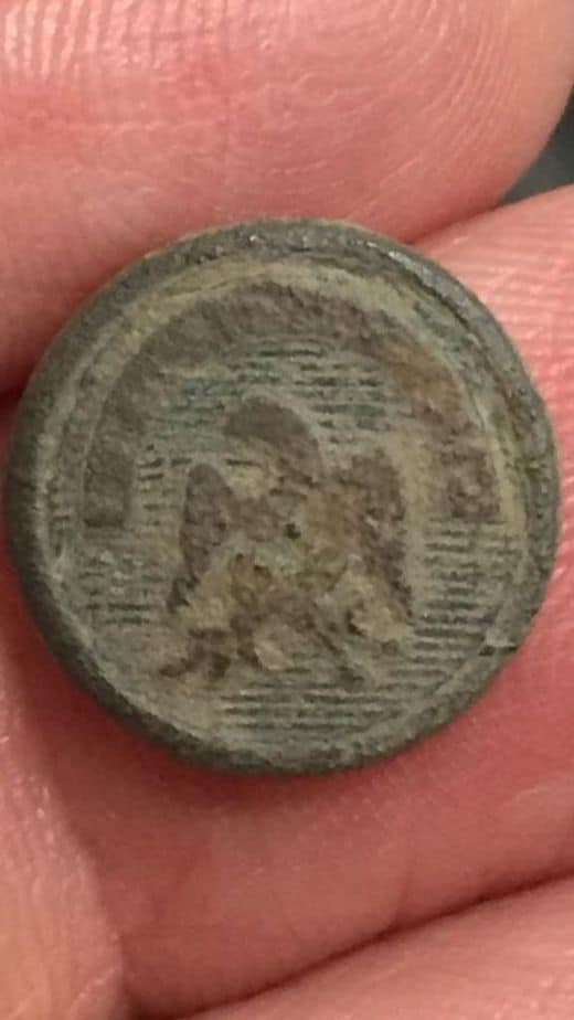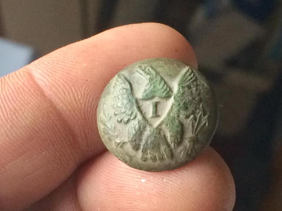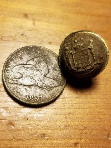 Travis Chapman Wyant dug a beutiful Eagle Infantry “I” Button in Frostburg, Maryland.