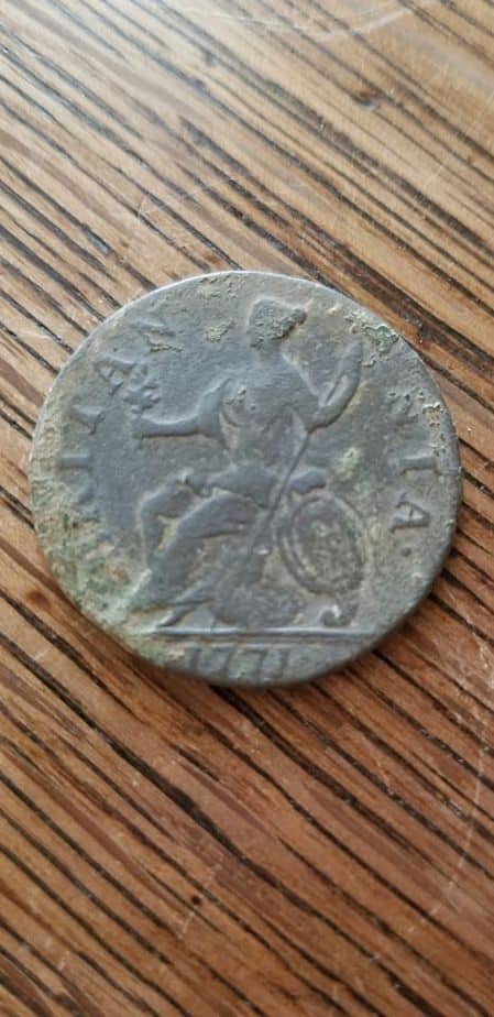 Doug Smith unearthed several King George coppers in one day and I was there! But this 1771 KG was by far the best one he found in Newville, Pennsylvania.