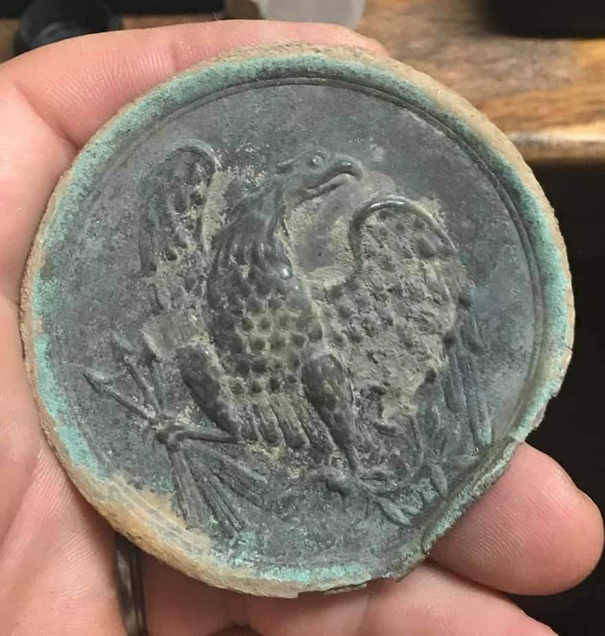 John Davidson Sr. (yes he is the father of the John Davidson above) dug this beautiful Eagle Breast Plate in Washington County, Maryland.