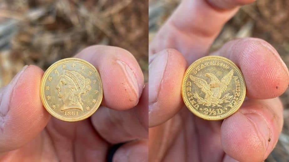 Breaking News! Not only did Michael find a $2.50 gold piece in March, then he found the $1 gold piece in May… He just informed me that at the same site, HE DID IT AGAIN! Michael found his 3rd GOLD COIN! This time was another 1861 $2.50 gold piece (see below).