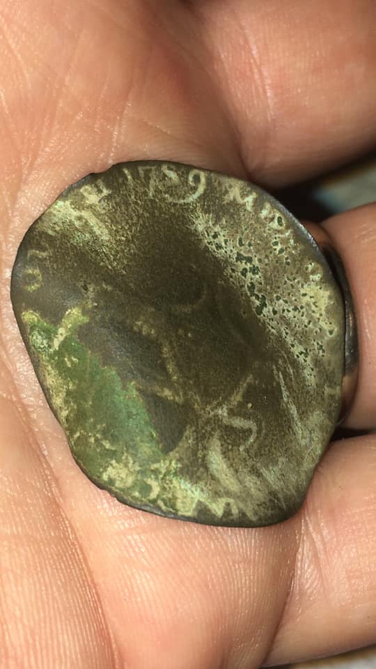 From Tera herself, “I was metal detecting a long forgotten home site from the mid 1700’s with my husband and two children. We had been there once before this spring and decided to go back after the corn was off. Signals were few and far between. I hit a signal that wasn’t very promising, a scratchy signal that came up in the mid 40’s on my AT Pro. I kicked aside the corn fodder and dug the signal.