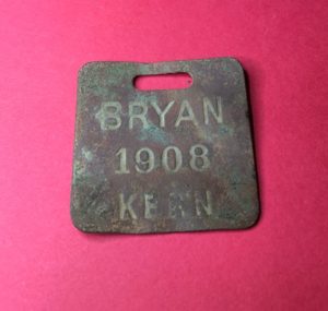 Some of Tera’s favorite finds are shown below. Finds are a dragoon button, signet ring pipe tamper, half reales & cut 1 reales, Bryan and Kern Campaign luggage tag, dog tax tags 1926, 1928, and 1962, monogrammed sterling salt spoon, and her best condition US large cent.
